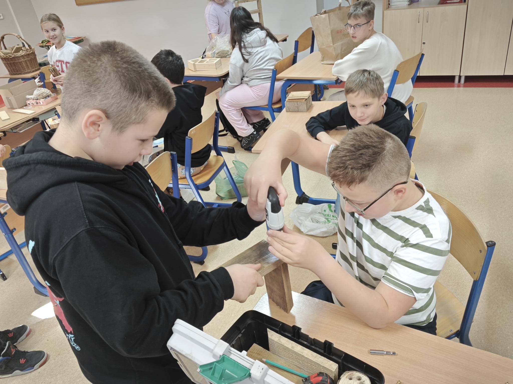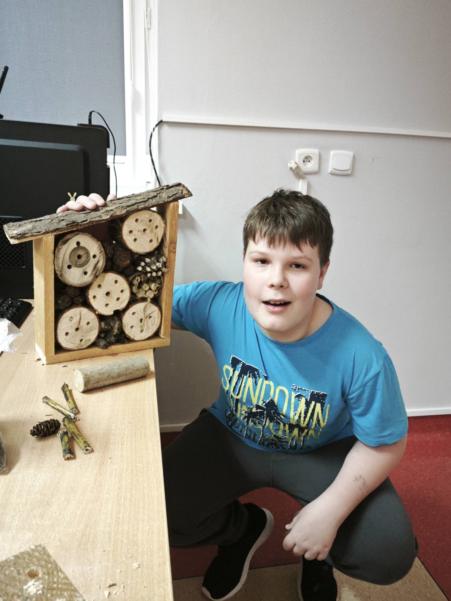 Jesienią zeszłego roku uczniowie klas 4-6 rozpoczęli pracę nad projektem „Hotel dla owadów”. W czasie lekcji techniki z zaangażowaniem pracowali nad wdrażaniem swoich autorskich koncepcji. W efekcie ich wytężonej pracy powstało wiele wspaniałych niepowtarzalnych budowli w których z pewnością schronienie znajdzie nie jeden pożyteczny dla ekosystemu owad.