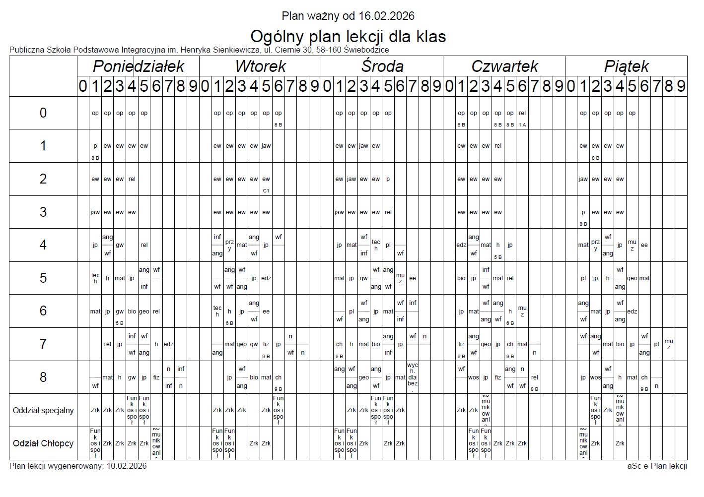 Plan lekcji 2025/2026