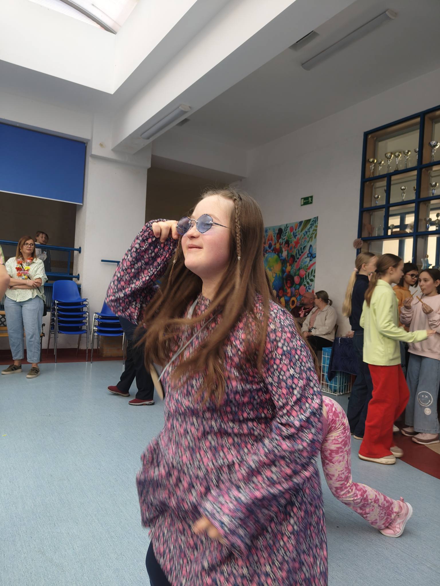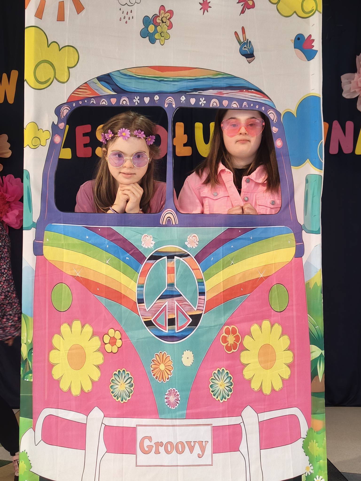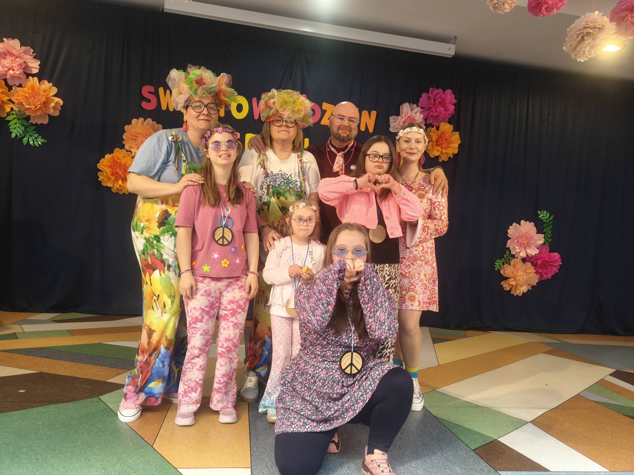 Naszą szkołę reprezentowały uczennice: Nadia, Zuzia, Emilka oraz Amelka. Wydarzenie przebiegało w niezwykle radosnej i przyjaznej atmosferze, a jego motywem przewodnim były kolorowe klimaty dzieci-kwiatów i styl hippie.