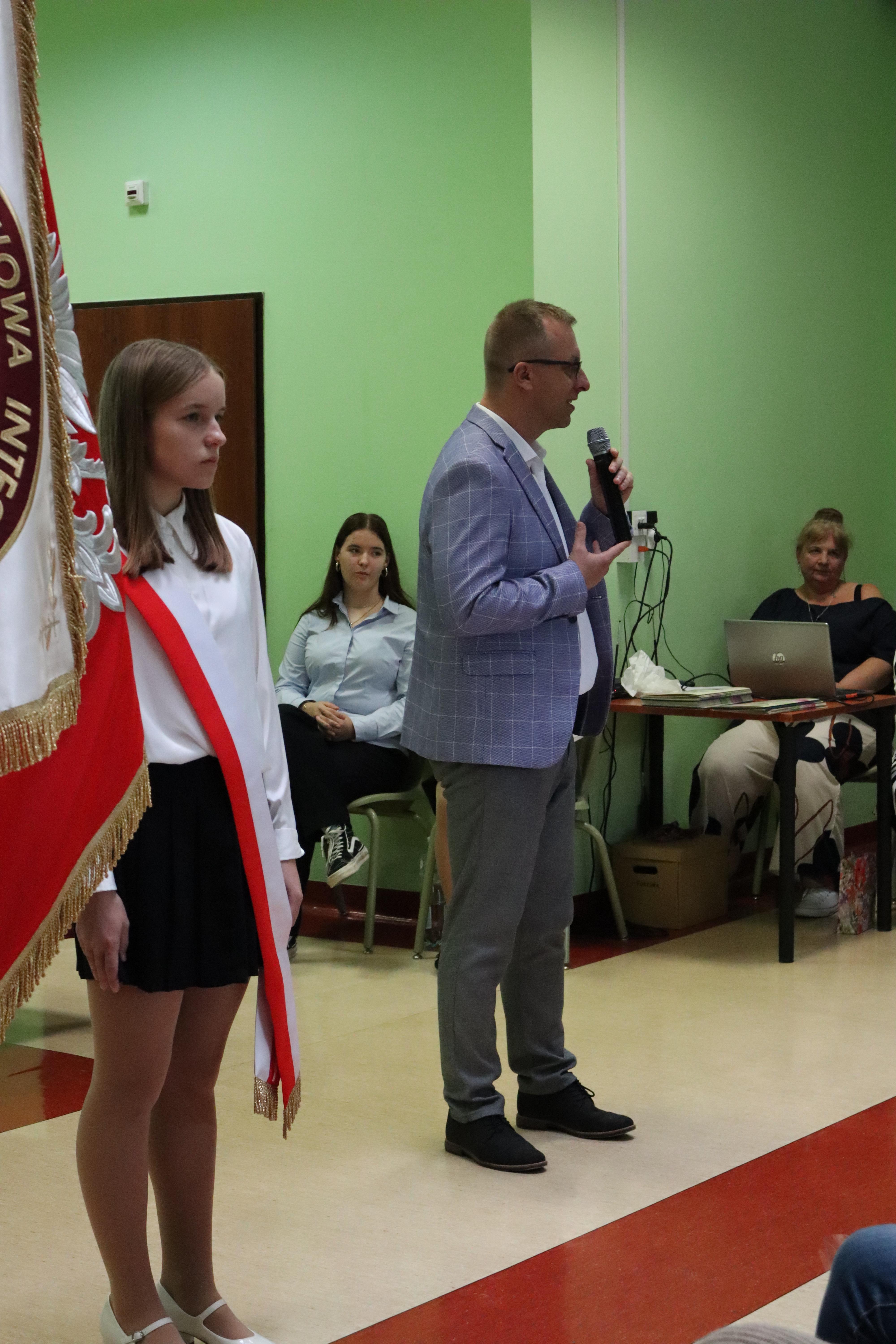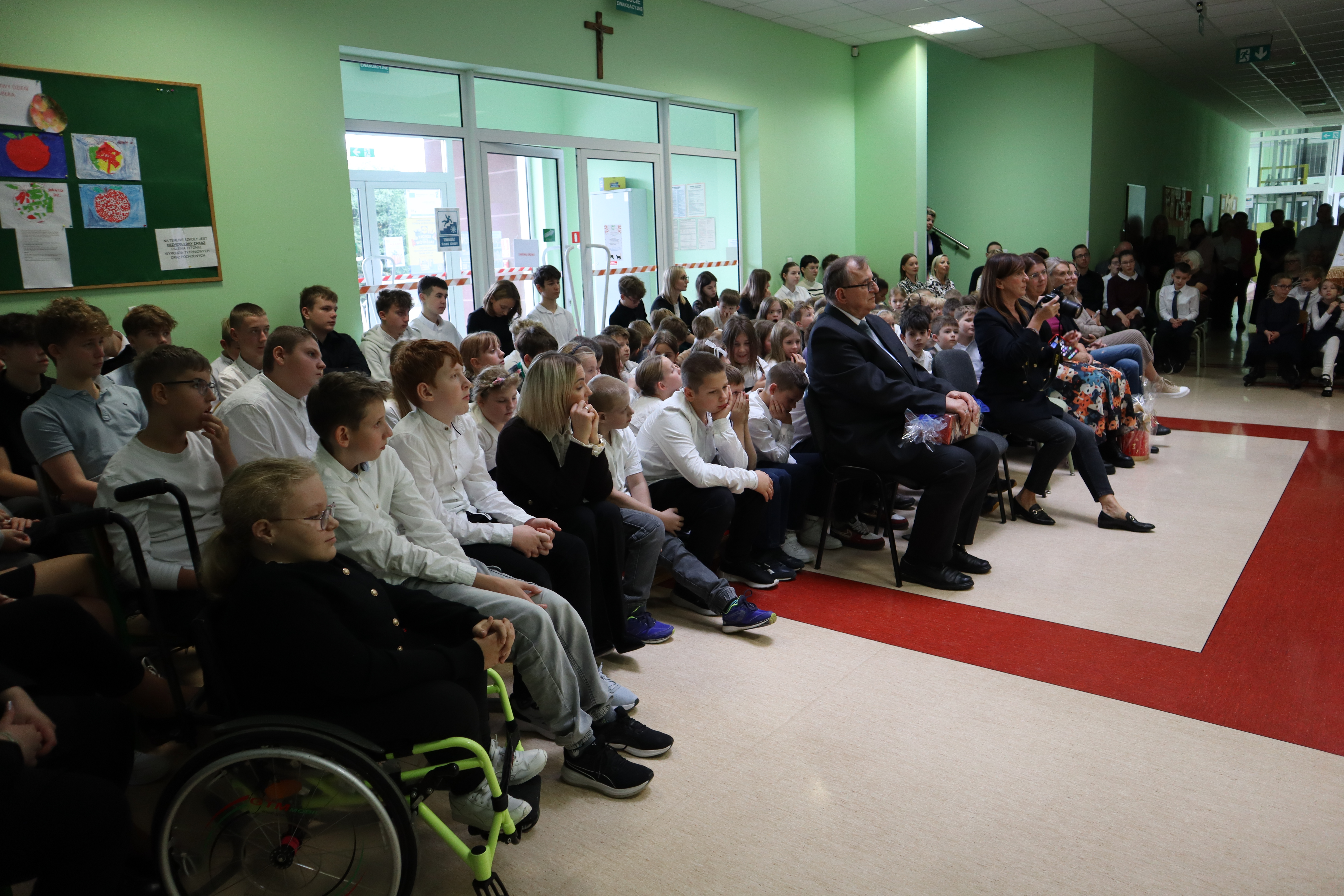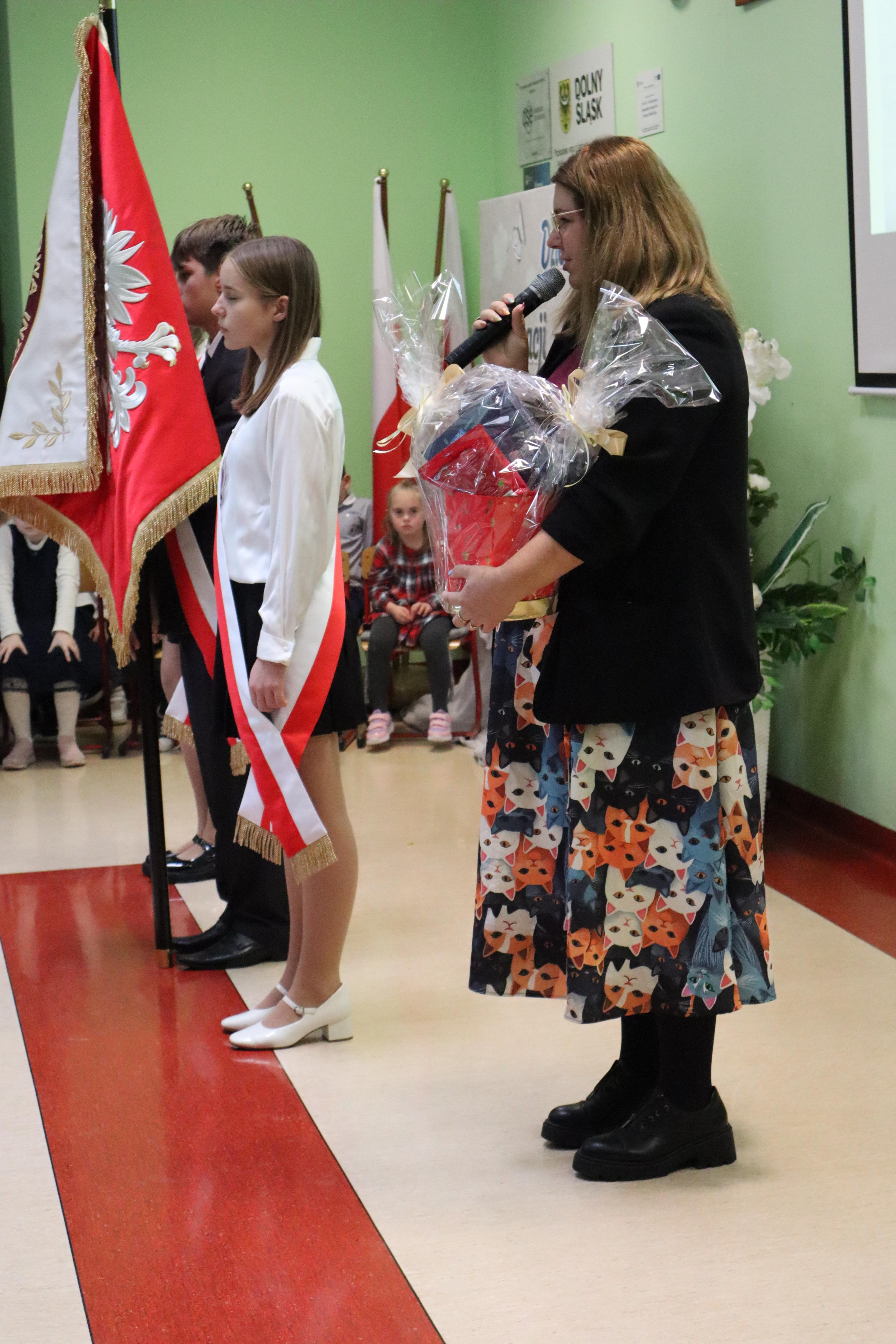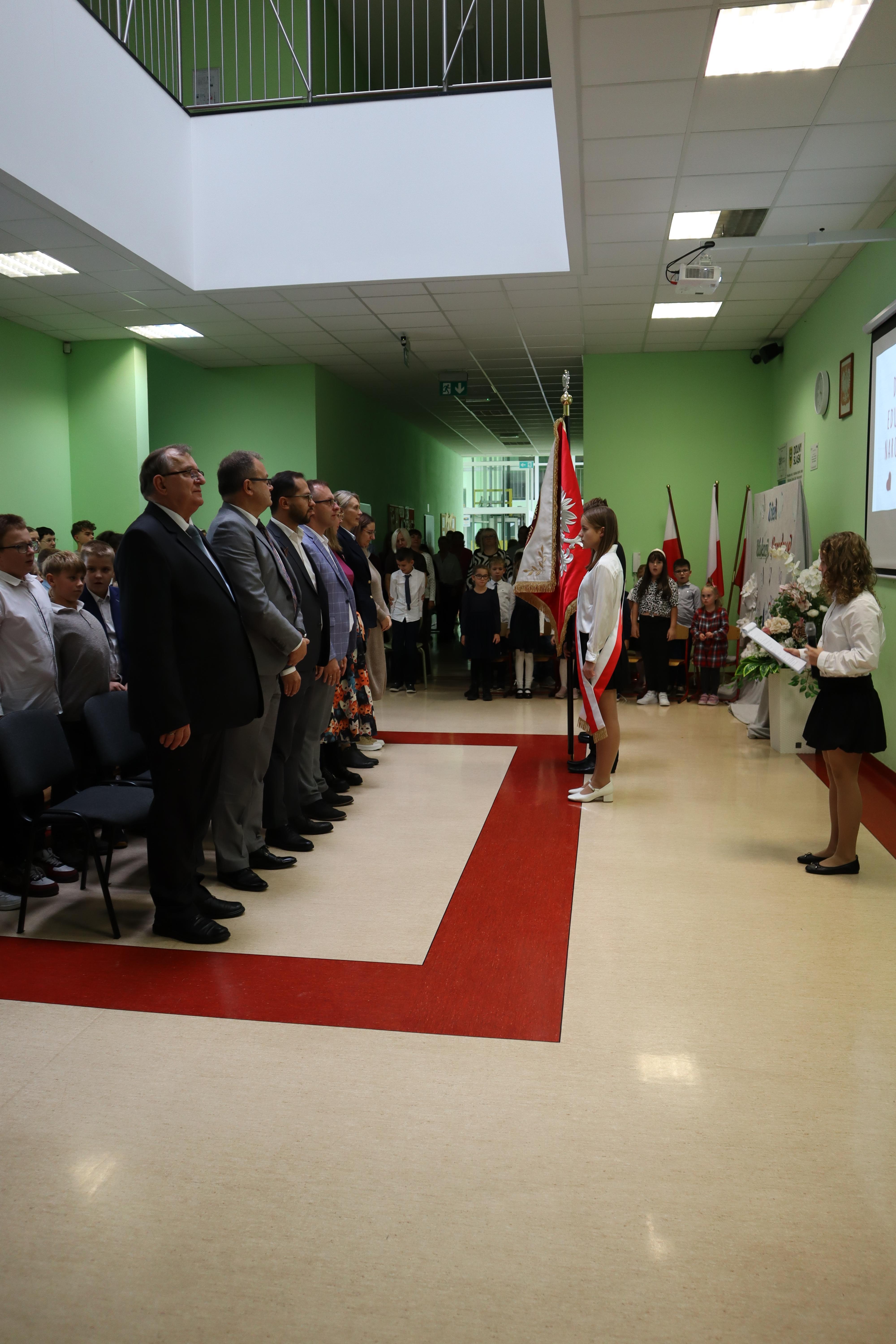 Podczas uroczystości wystąpił Poczet Sztandarowy naszej szkoły, w skład w którego wchodzą: Dawid Skrężyna, Wiktoria Kościelniak oraz Wiktoria Krzywicka. Do wystąpienia przygrywali werbliści w składzie: Oliwier Kubik, Rafał Marcinek, Dawid Sordyl oraz Lena Dudek.