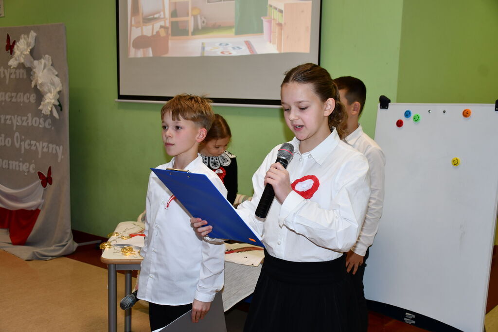 Serdecznie dziękujemy Panu Michałowi Sokołowskiemu za akompaniament do Hymnu Narodowego oraz wszystkim dziadkom i rodzicom, którzy pojawili się na uroczystości, aby wspierać dzieci w tym ważnym wystąpieniu.