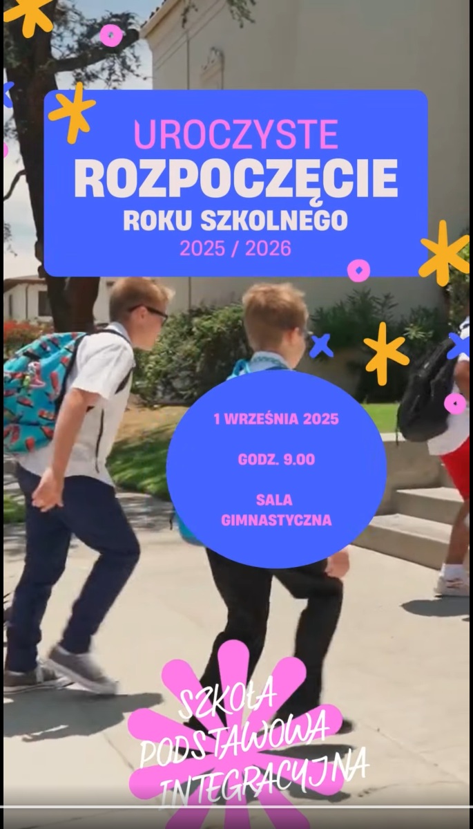 Zapraszamy na uroczyste rozpoczęcie roku szkolnego 2025/2026, który odbędzie się 1 września 2025r o godz. 9.00 w Szkole Podstawowej Integracyjnej im. Henryka Sienkiewicza.